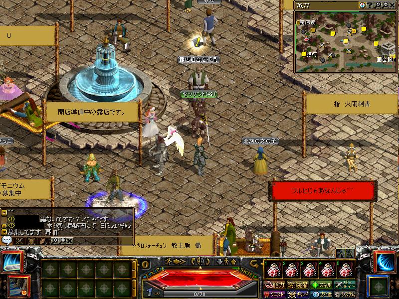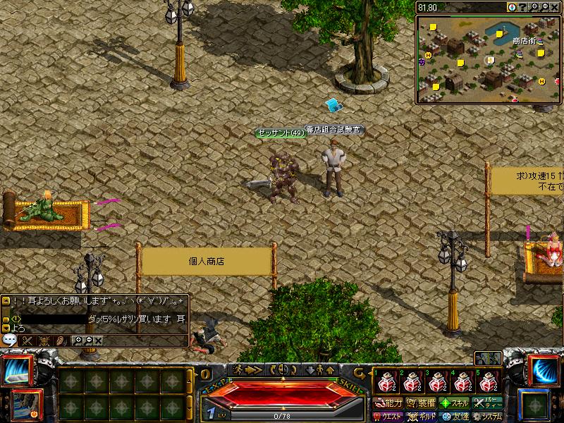 で、インベントリもいっぱいだったので、ハノブへ戻っていらないアイテムを売りさばき、ちょっと使えそうな火抵抗8%のついたバングル(防御力弱い)と、アリアンで売った方が高くなりそうな、知識+2のついたメタルスケールアーマーと、敏捷+14のついたウッドアーマーを銀行に保管して、ハノブ内にて落ちました。
